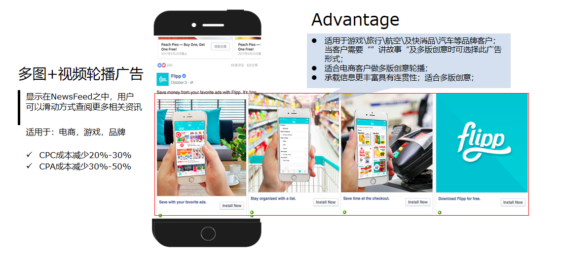 Facebook 廣告形式-多圖+視頻輪播廣告